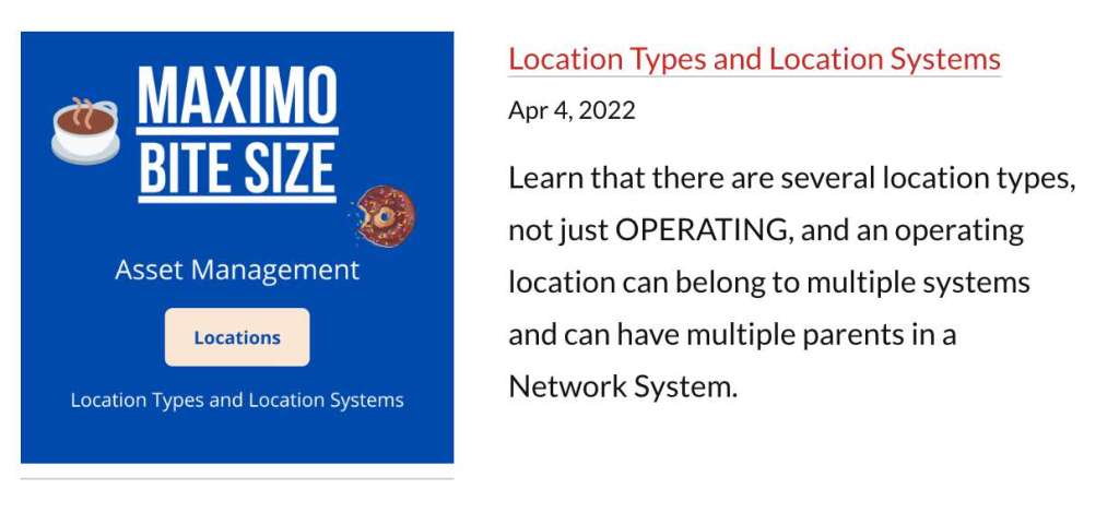 I do now have a new page for Maximo Bite Size on Maximo Secrets, and I’ll need to consider how I structure this. The episodes should be listened to in order, but they will also need to be grouped into chapters, these first ten transcripts are part of a chapter called Asset Management, and the 90-100 episodes that I am initially planning might require about seven chapters. And, what about next year? I can potentially see at least two more series after this, but I think they would be different pages obtained from a common Maximo Bite Size menu. So, I do need to think about structure to these pages, not just for the transcripts but also for the podcast episodes themselves.