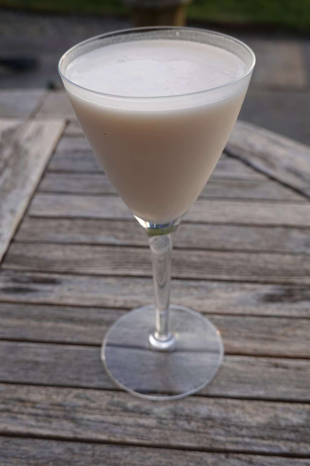 This looks as if I will be drinking a milk cocktail, there is just the faintest tinge of pink. It was not at all sickly, but next time, I’ll try 15ml cherry brandy with 7.5ml Maraschino Liqueur. If that doesn’t improve it, it may be the last time it gets made.